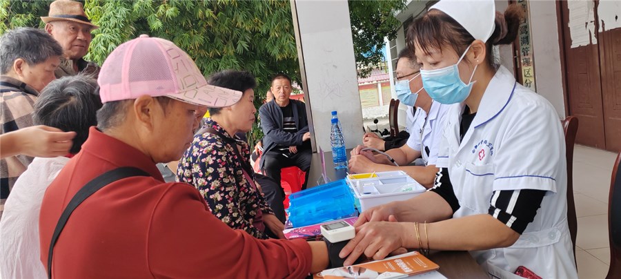 9月20日,白鹭湖管理区卫生院开展“服务百姓健康行动”义诊活动,让职工群众在“家门口”享受高质量医疗健康服务,提升居民健康生活品质。活动现场,广大居民有序排队咨询,接诊医生为居民提供血压测量、血糖检测